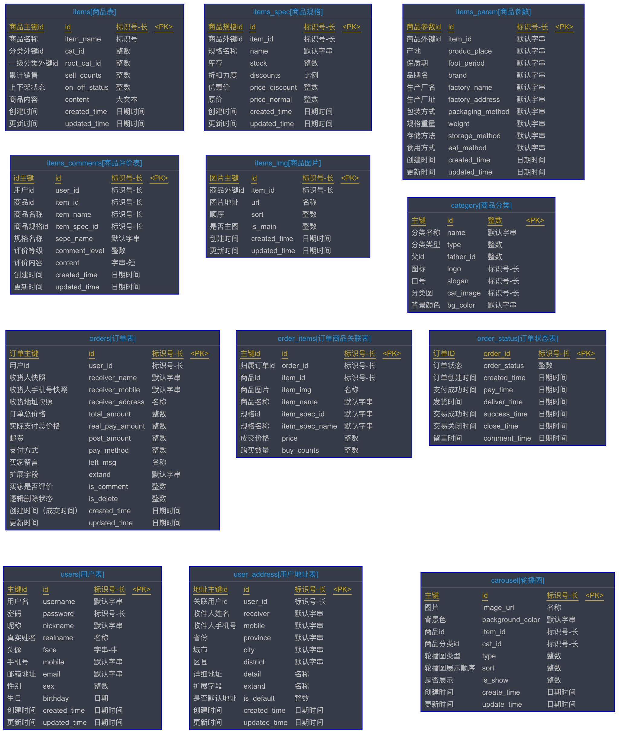 这里准备好了我们此阶段需要使用的表结构,可以先大概看一下下图